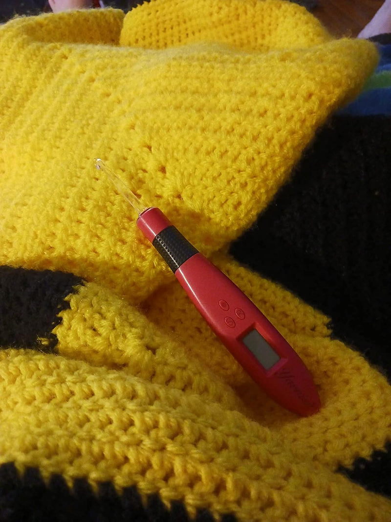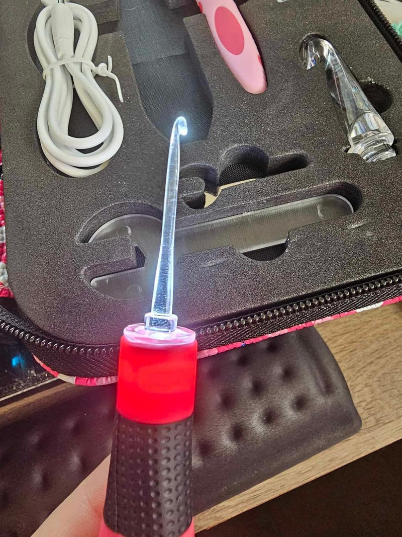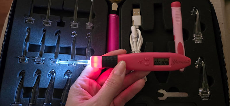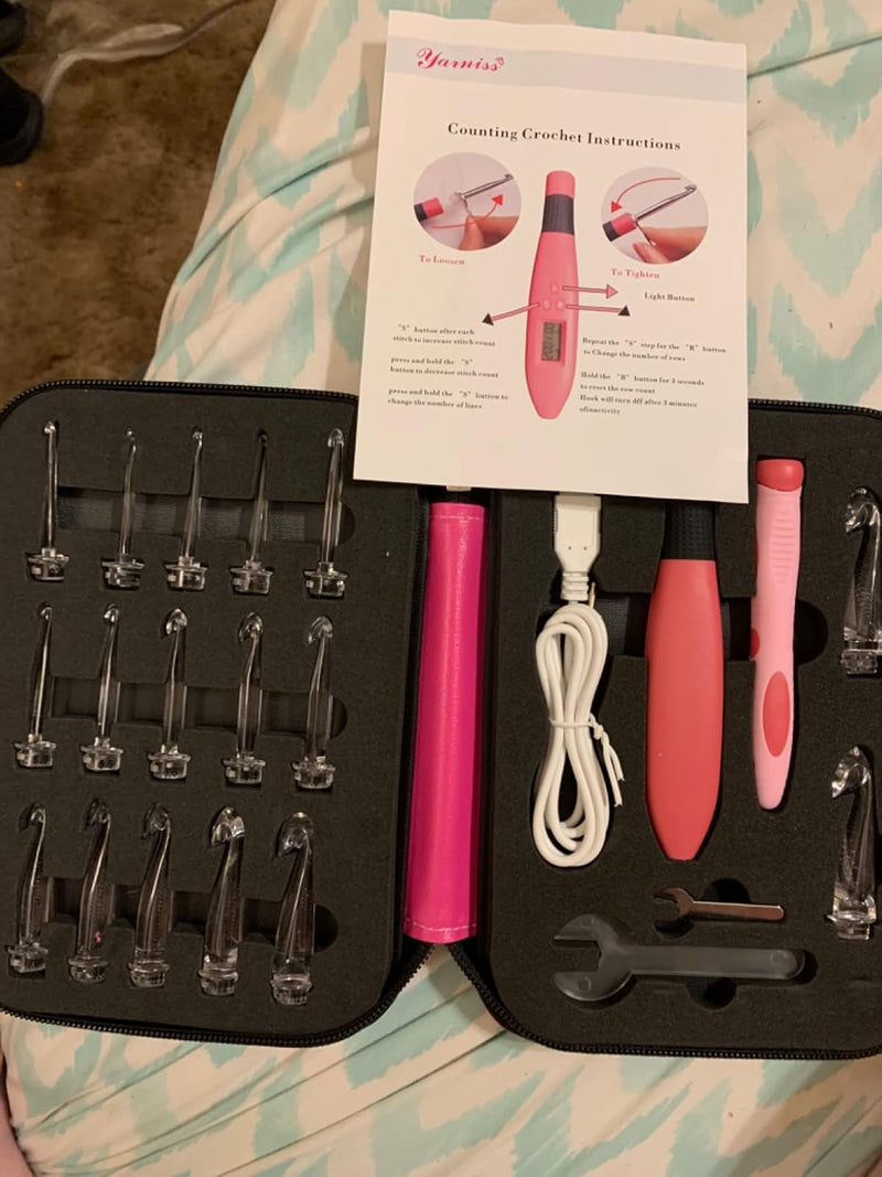 "As a new crocheter, this is ideal! The hooks are nice for a beginner, and I love the light and stitch counting features. It even lets you count rows. Thank you! A++++"