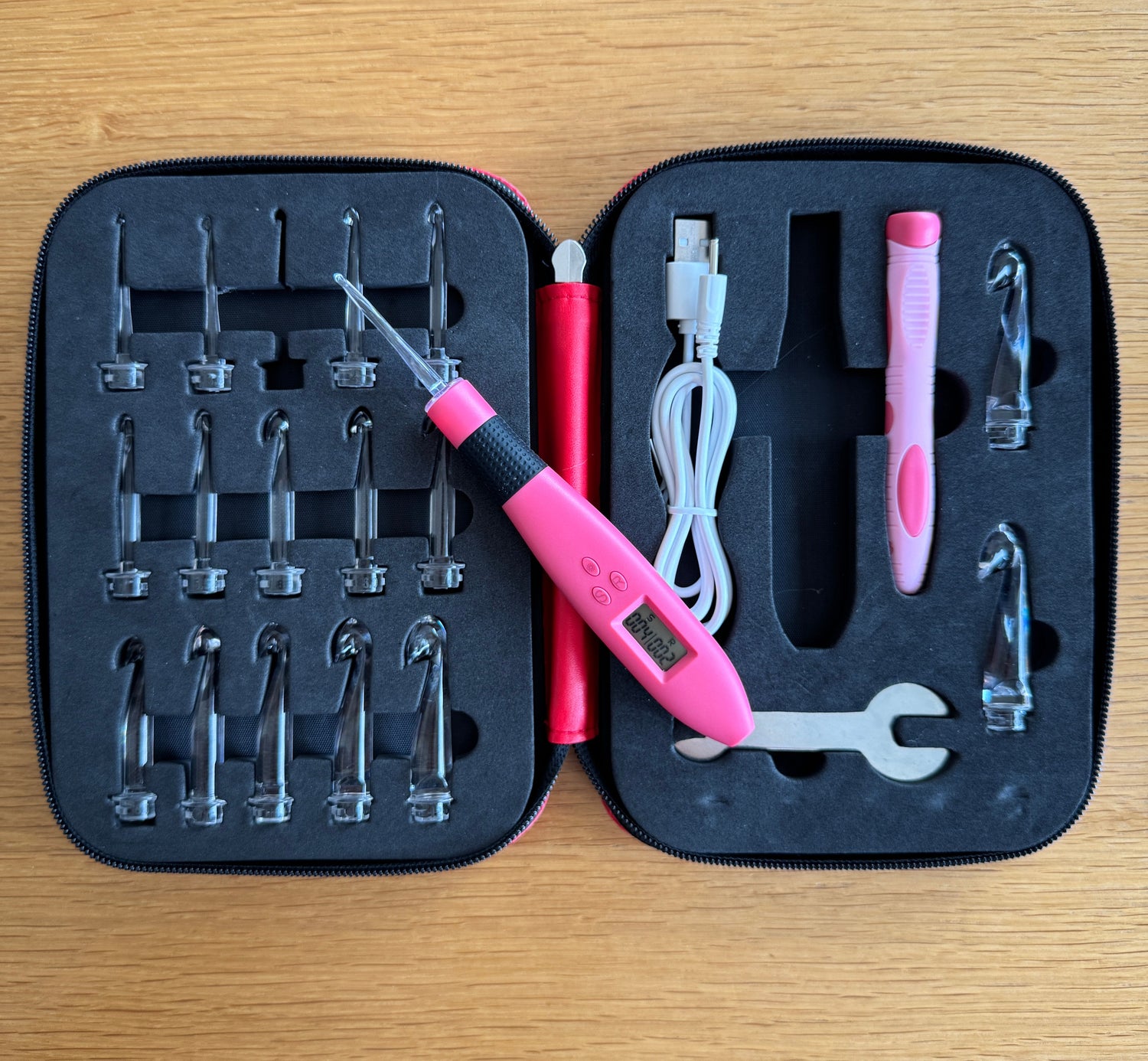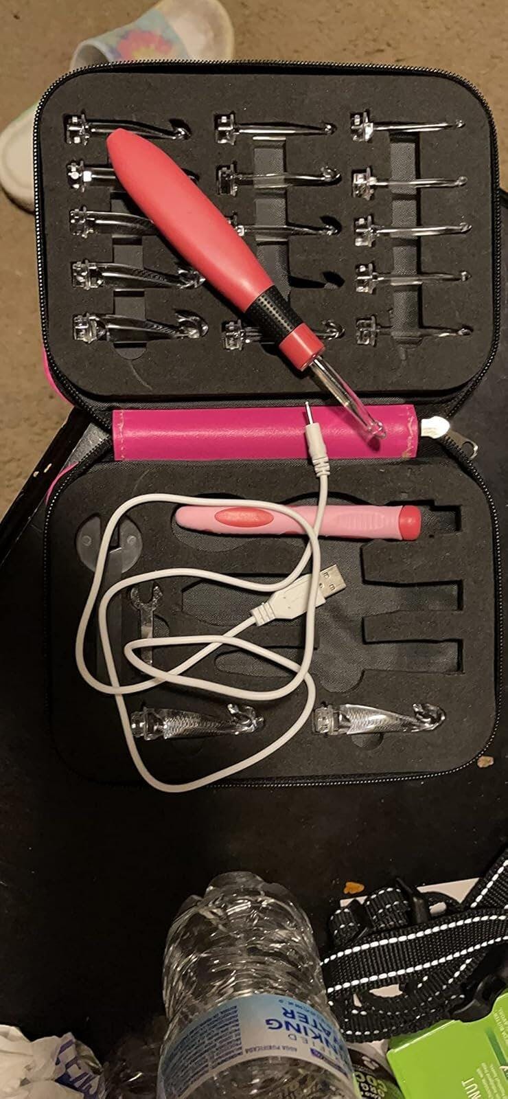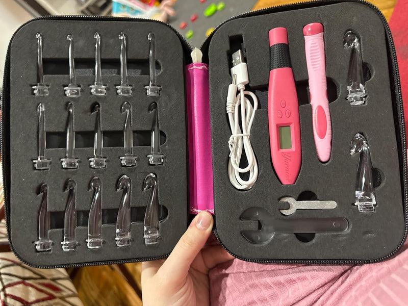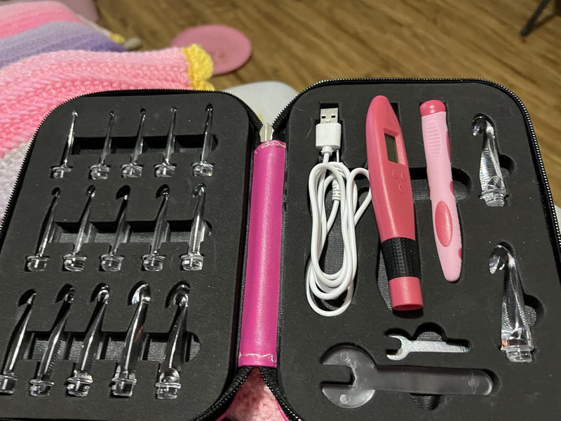 "As a new crocheter, this is ideal! The hooks are nice for a beginner, and I love the light and stitch counting features. It even lets you count rows. Thank you! A++++"